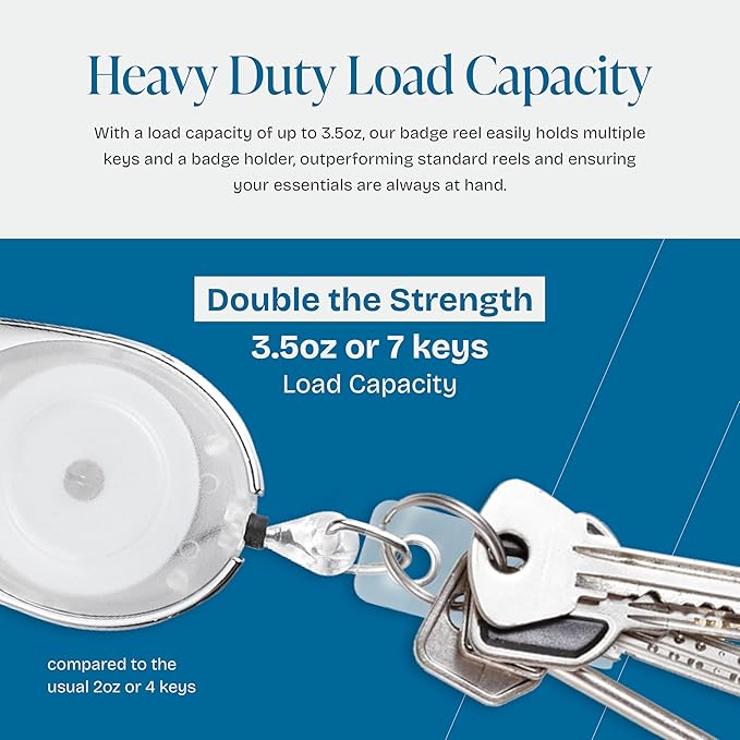 - 【Heavy Duty】 Max loading weight is 3.5oz or 7 keys compares to 2oz or 4 keys of other items on the market. Comes with key ring and perfect as retractable key chain.