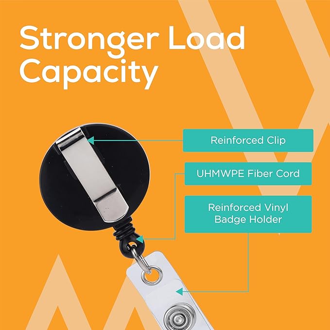 - 【NON-BREAKABLE CORD】 27.5" UHMWPE fiber cord which is the strongest man-made fiber in the world. 1.4x stronger than Kevlar, 5x stronger than Nylon. Ultimate bendable and non-breakable than steel wire. Unlock doors and access office is a breeze with this retractable badge reel.