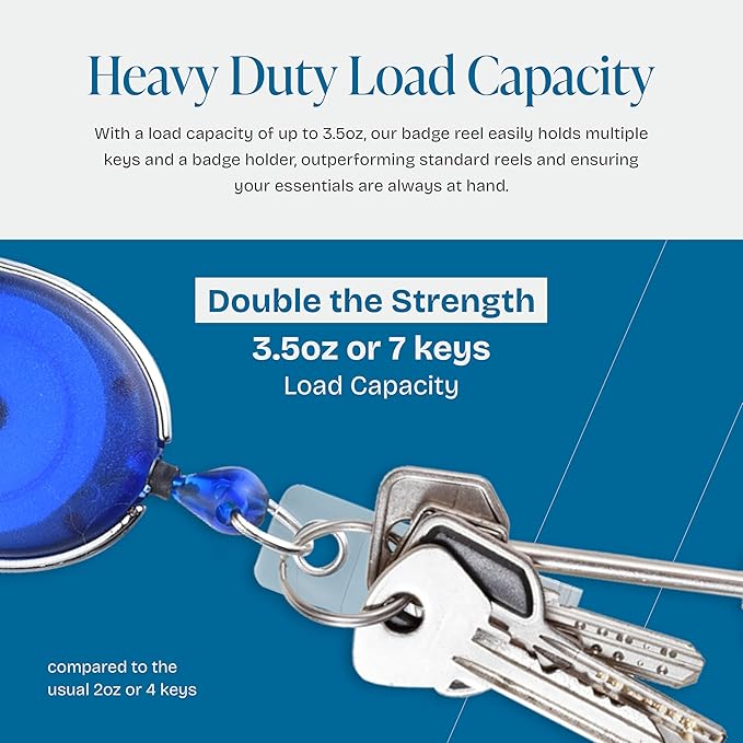 - Heavy Duty - Max loading weight is 3.5oz or 7 keys compares to 2oz or 4 keys of other items on the market. Comes with key ring and perfect as retractable key chain.