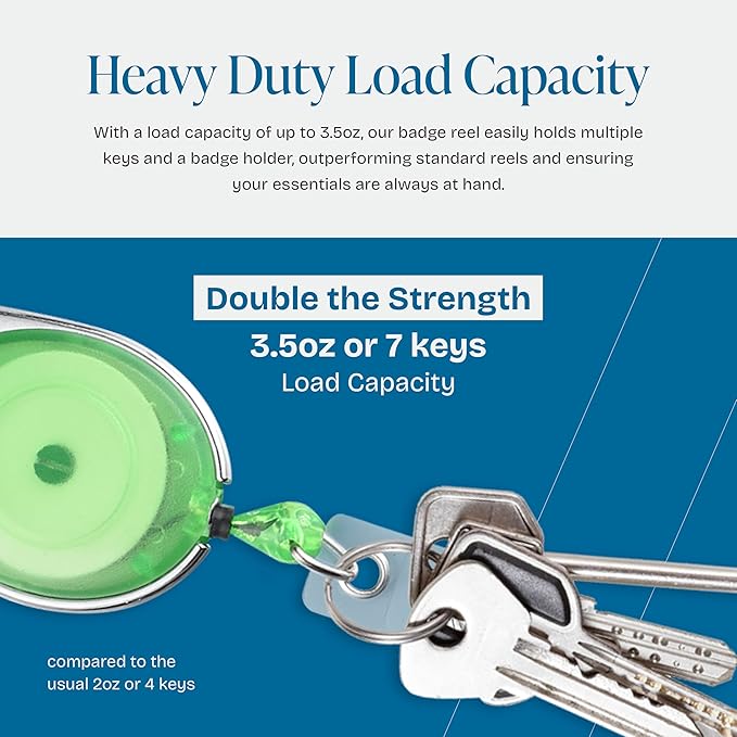 - 【Heavy Duty】 Max loading weight is 3.5oz or 7 keys compares to 2oz or 4 keys of other items on the market. Comes with key ring and perfect as retractable key chain.