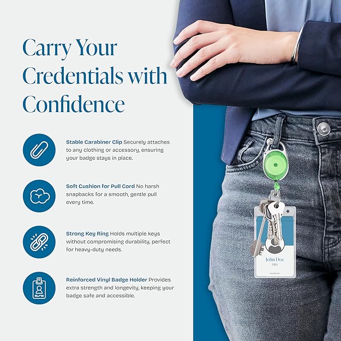 - 【Top Quality】Upgraded and reinforced construction makes the most solid and durable retractable badge holder of this kind on the market. we're different in all of these products that look the same!
