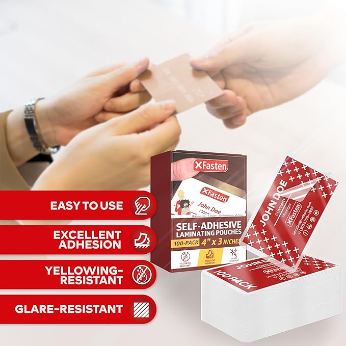 XFasten Self Seal Laminating Pouches Business Card Size 4-Inch x 3-Inch 100-Pack, 10 Mil Business Card Laminating Pouches Non-Yellowing Self Sealing Laminating Sheets Business Card Size