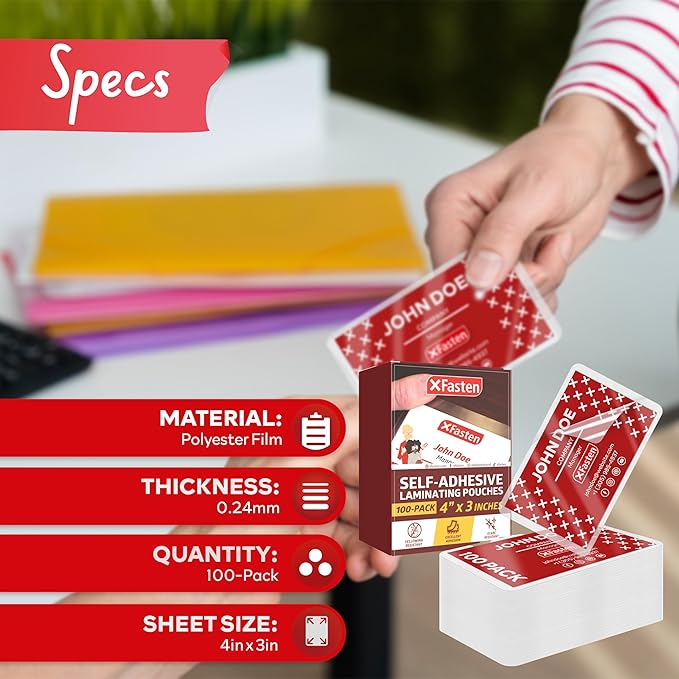 - NO MACHINE NEEDED. Our self sealing laminating pouches do not require a thermal business card laminator thanks to its peel-and-stick self-adhesive surface, delivering quick and EASY-APPLICATION yet PROFESSIONAL-QUALITY lamination.