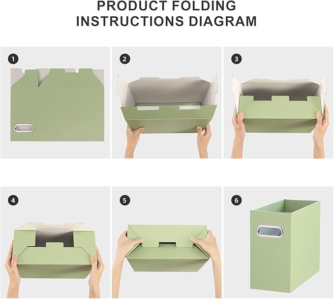 Oterri File Organizer, Small Storage Box, Cardboard File Folder Organizer, Collapsible File Box, Hanging File Organizer for Letter Size, Portable File Box with Handle, Only Box(Green,8 Packs)