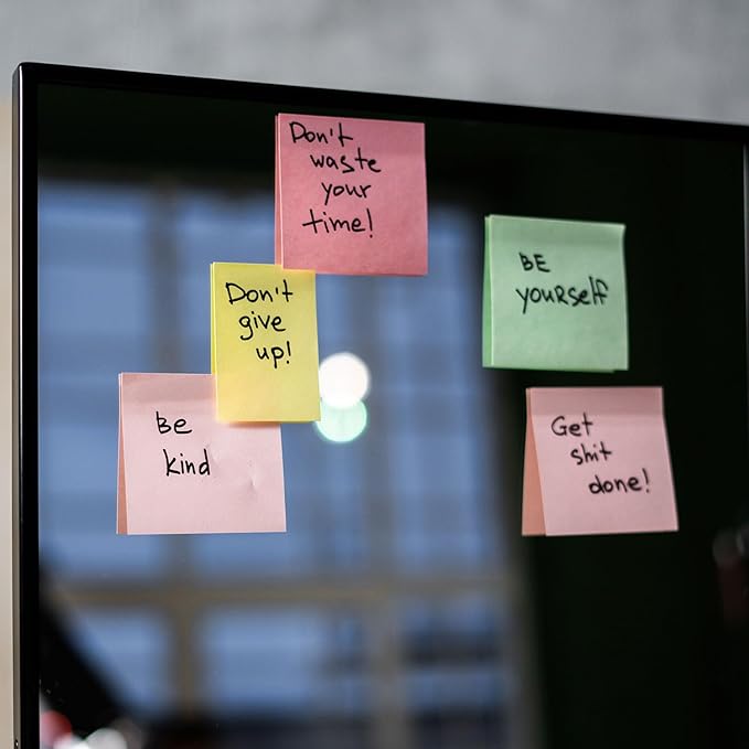 - Our sticky notes are perfect for leaving messages, making to-do lists, or just keeping track of things. Can be pasted on the wall, blackboard, computer, desktop, refrigerator, and almost all other smooth surfaces.