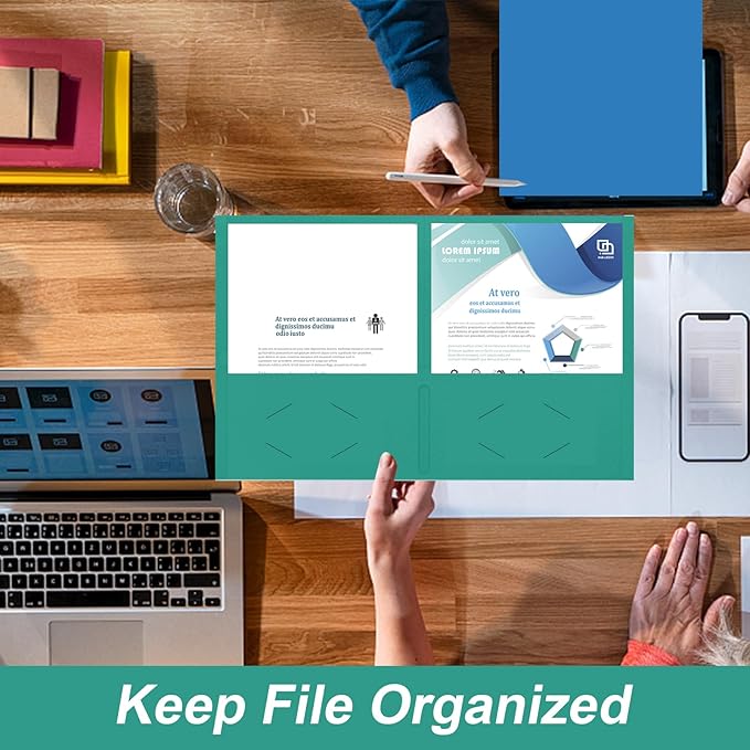 - LARGE CAPACITY: Two pocket folders bulk is made of thick and texture paper, not easy to break and deform. Holds 50+ sheets per pocket, ideal for long-term use and storage