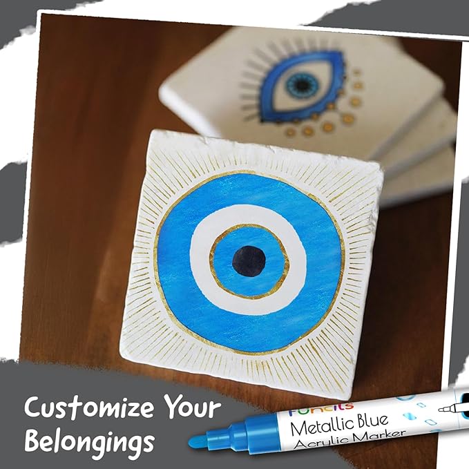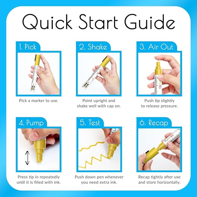 - Quick Drying and Water based - Your premium acrylic paint pen kit. Features smooth colors to produce true, consistent shades and are resistant to water, fading, and abrasion. Used as paint pens for wood, metal paint pen & blue fabric paint marker