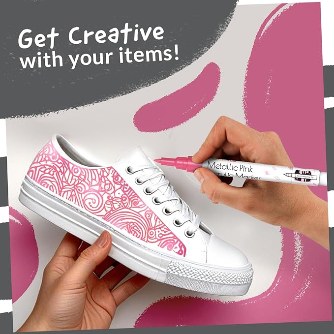 - Metallic Pink Marker - Enjoy creating art & craft projects on. Shoe, leather, furniture, clothing, sneaker, porcelain, polymer clay, kindness rocks, tire marker, pink paint for wood