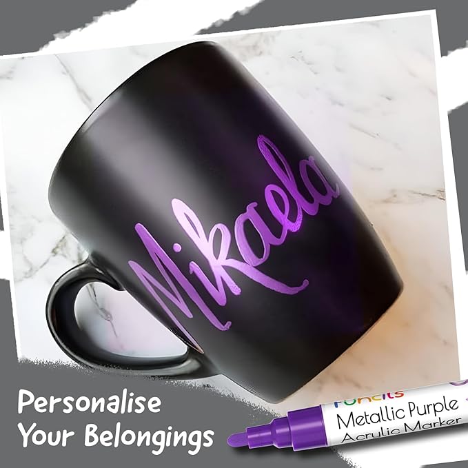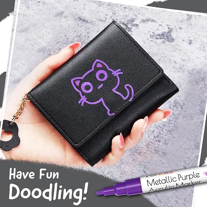 - Quick Drying and Water based - Your premium acrylic paint pen kit. Features smooth colors to produce true, consistent shades and are resistant to water, fading, and abrasion. Used as paint pens for wood, metal paint pen & purple fabric paint marker