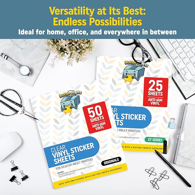 Clear Printable Vinyl for Inkjet Printer - For Epson - (Clear Sticker Paper | Waterproof | 25 Sheets) - Transparent Inkjet Printable Vinyl Sticker Paper Avoid Jams for Printers