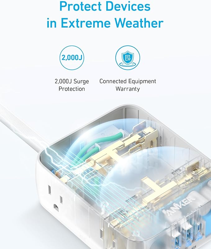 - Built-In 2000J Surge Protection: Keeps your connected devices safe from sudden power surges and voltage spikes, even in a storm.