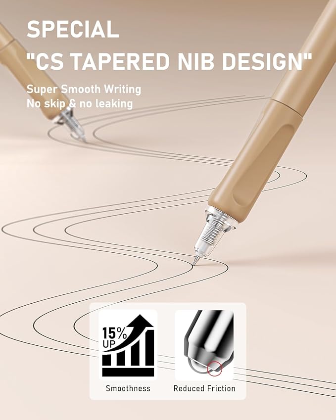 - Smooth & Various Nibs: The cute pens set have a consistent flow of ink and smooth, which results in effortless writing and give you a happy mood in your writing. It provides different nibs: ST nib, Bullet nib, CS tapered nib, 4mm wide nib for highlighter, fine spring structure built into the nib, which makes ink output stable and writing easier and smooth