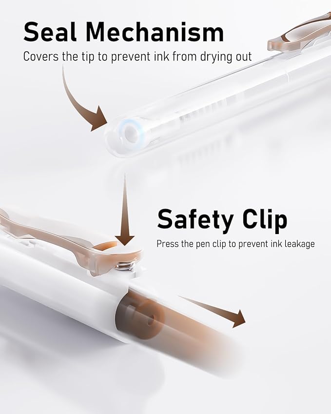 - Premium Quick-Drying Ink: 0.5mm Retractable gel pens with quick-drying ink technology to prevent smudging or smearing and keep the paper clean, it's perfect for left-handed individuals or those who have a habit of trailing their hand while writing. Each nib is sealed with wax to prevent the ink from drying out. Note: The sealing wax needs to be removed before writing
