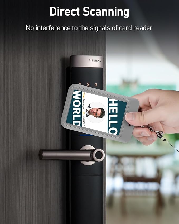 - Dual-purpose: Ideal for displaying your ID card due to its clear front window. And easy to hide the magnetic card on the back for frequent scanning without removing the case.
