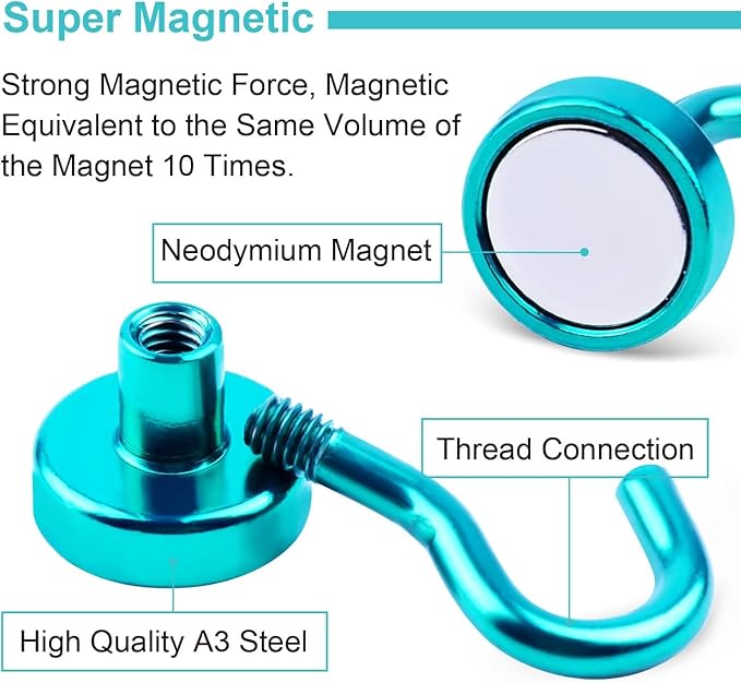 - 【Versatile Use】 Rare earth neodymium magnet hooks are ideal for hanging various household articles, office material etc., great for organization. They are also widely used in cruise, fridge, kitchen, locker, workplace office, garage, indoor, outdoor and anywhere there is iron or steel. No drilling holes, No sticky residue, No bolt or screws; Easy to install or remove and reusable