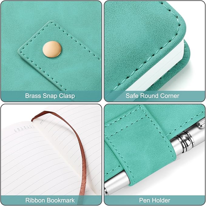 - đăLEATHER COVER WITH POCKETăThe cover is made of high quality faux leather, soft and comfortable to touch, sturdy and durable to use. Unique pocket design and leather hardcover with great color combinations will give your notebook a distinctive look from standard hardcover journal. Rounded corner and light weight makes it very safe and easy to carry, also works well as a travel diary.