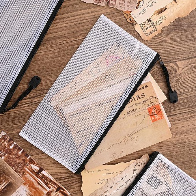 12 Pieces Plastic Mesh Zipper Pouch Bag/Zipper Envelope Document Storage Pouch Bag/Zip File Folder/Office Supplies Bills File Waterproof Zipper Pouche/Storage Pouch for Puzzle and Office