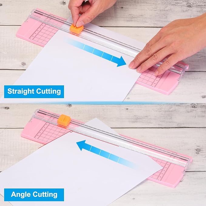 - Instruction: Using Method: Place the paper on the paper trimmer, adjust the angle you need, and press the blade handle to slide and cut.