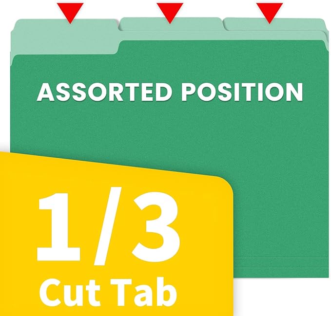 - 1/3 Cut Tab: Navigate through your files seamlessly with the 1/3 cut tab feature. This thoughtful design allows easy labeling, making it simple to categorize and retrieve documents efficiently. Stay organized and in control with these user-friendly folders.