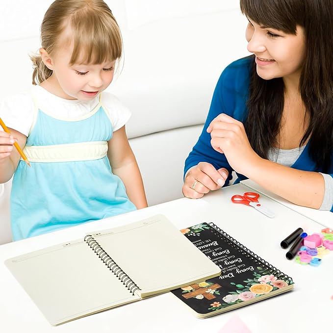 - Double Spiral Binding: The notebook has a double spiral design, the sturdy spiral binding allows the notebook to lay flat, making it easy to write on both sides of the page