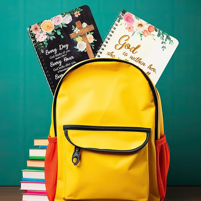 - Floral Cross Religious Spiral Notebook: You will get 2 pack bible verses spiral notebooks in different designs, and the notebook is 50 sheets and 8.3 x 5.5 inches. The cover designed with watercolor flowers, cross and bible verses, which is visually appealing notebooks