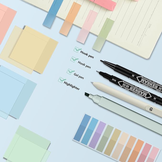 - Daily Use: aesthetic school supplies are suitable for everyday use, including 12 highlighters, 5 ballpoint pens, diverse colors, 1 purple beige pen case, 1 marker pen, 10 pads of square sticky notes (500 sheets), 1 pad of sticky index tabs (200 sheets), gratifying your daily use and replacement demands for journal, notepad, work, study notes, bible study available for family, office, travel and so on