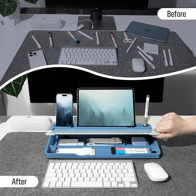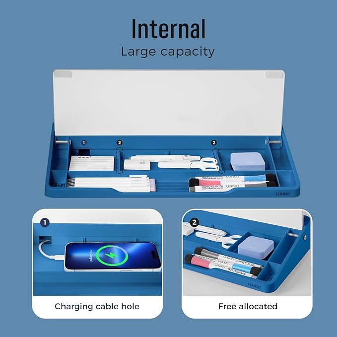 • Multifunction: A combination of writing board, desk organizer, keyboard stand and Pad/phone holder. Includes a charging cable hole on the back side of the product.