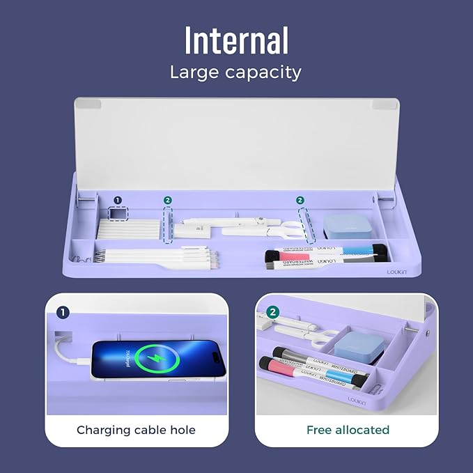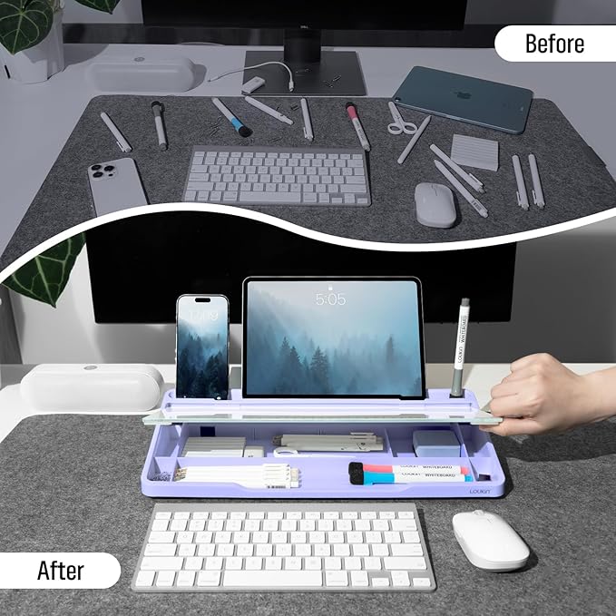 - Multifunction: A combination of writing board, desk organizer, keyboard stand and Pad/phone holder. Includes a charging cable hole on the back side of the product.