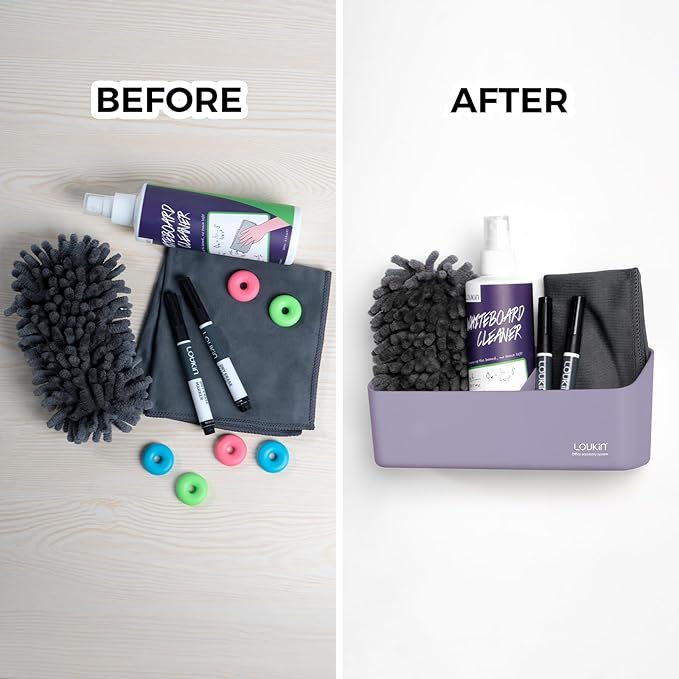 loukin Magnetic and Adhesive Marker Holder, Dry Erase Accessory Tray, Magnetic Storage Organizer for Whiteboard, Glass or Refrigerators (Purple)
