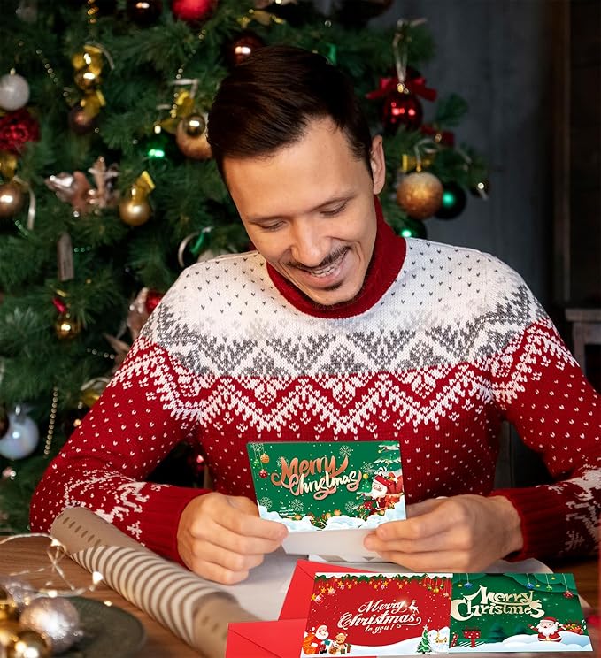 - Christmas Party Favors: The exquisite Christmas greeting cards have a strong festive atmosphere and are very suitable for expressing Christmas blessings love & hugs to family and friends on the occasion of Christmas party and New Year party. The envelope that comes with the Christmas card can also contain small gifts and photos, making it the best choice for Christmas gifts!