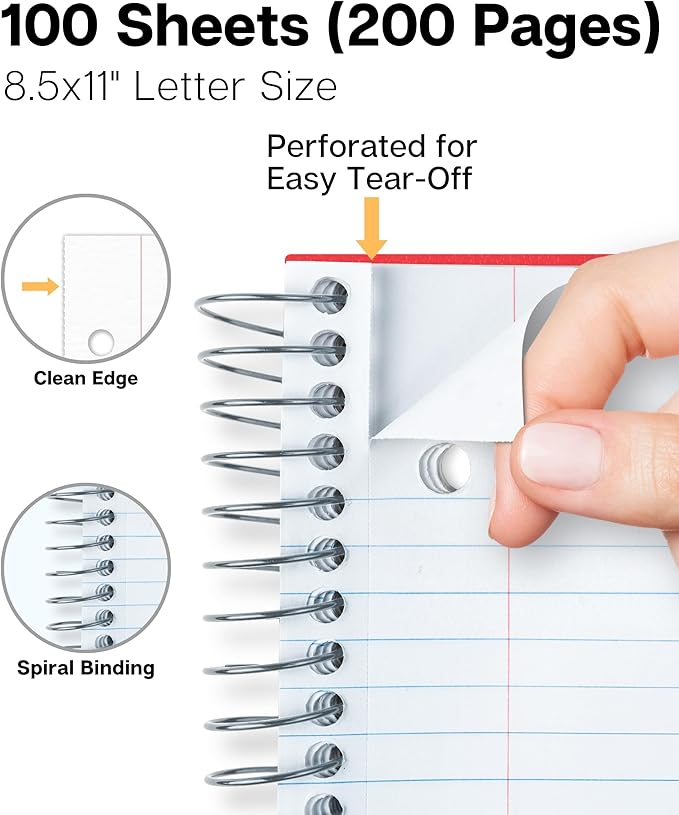 - 100 Sheets (200 Pages) College Ruled Paper: Standard 9/32” width, Take more notes per page. 3-Hole punched, Perforated for easy tear off. Detached paper size: 8-1/2” x 11”.