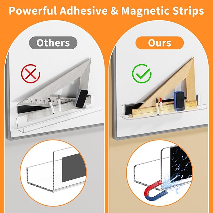 - 【Convenient Size and Design】 With dimensions of 17*2.2*2.2 inches and a curved edge design, our magnetic display shelves allows for organized placement of books and teaching supplies. The 0.75 inch height provides a barrier to prevent items from falling off.