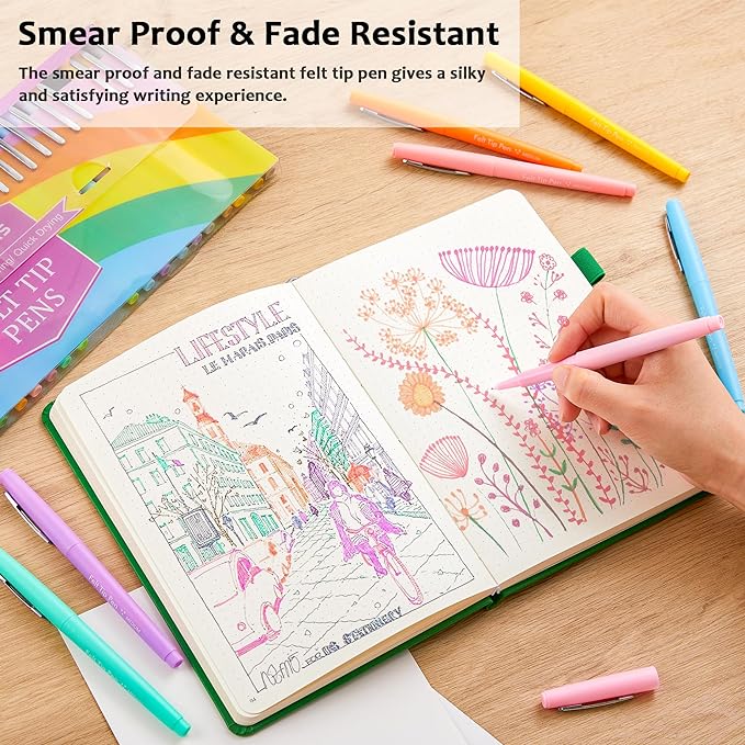 - SMEAR PROOF & FADE RESISTANT: Lelix felt tip pens with high pigment, long-lasting, quick-drying ink is smear proof and fade-resistant, giving a silky and satisfying writing experience.