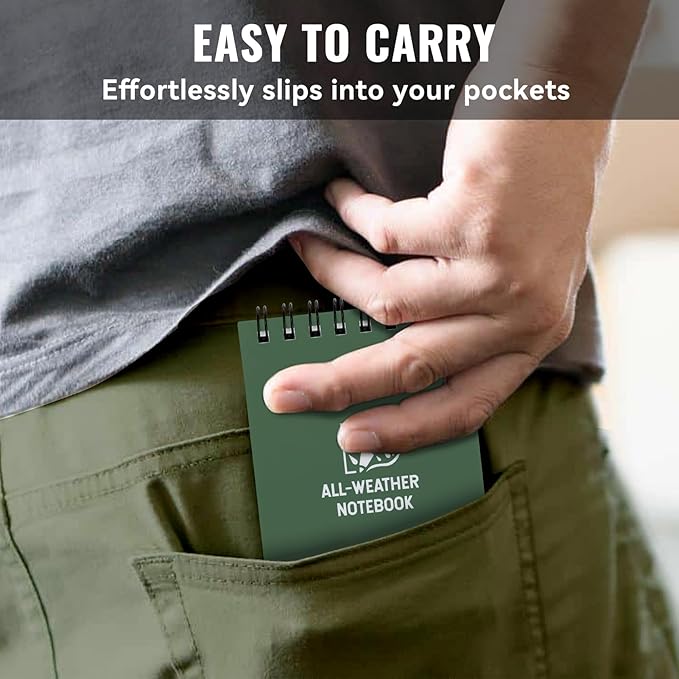 - Stay Organized, Rain or Shine: No need to worry about your notes getting ruined by unexpected weather. Our waterproof notepads are crafted to withstand water, sweat, grease, mud, and even laundry mishaps, your notes will remain safe and legible, allowing you to capture ideas, inspirations and memories without worry