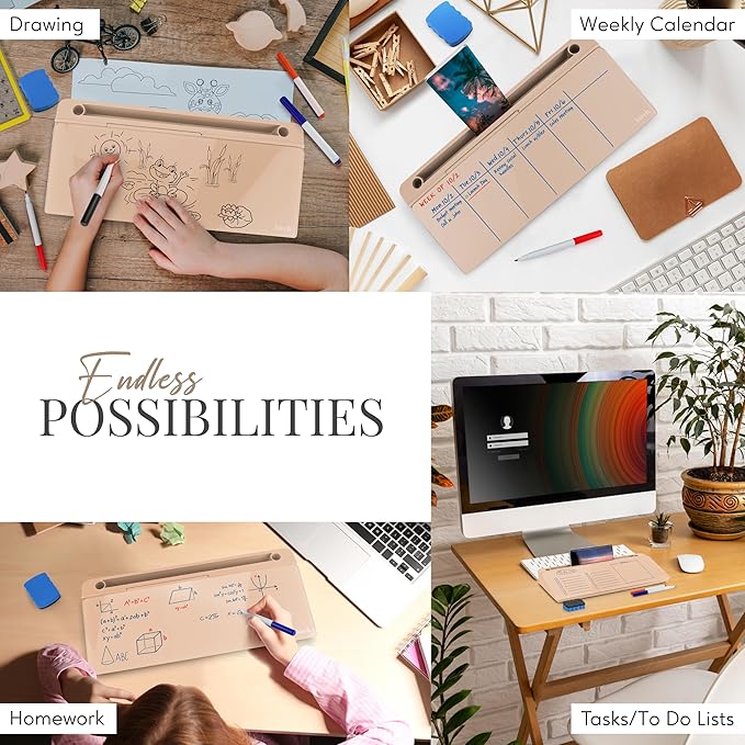 - UPGRADE YOUR WORKSPACE - Working from home or at the office our desktop glass whiteboard for desk complements your home decor & adds a bit of your style to an office space. Lightweight & portable our desk dry erase board makes it easy to bring our glass white board back & forth from the office.