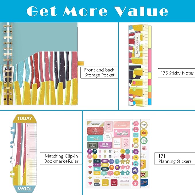 - 【Featured Accessories】Academic Planner 2024 has 175 sticky notes+ matching clip-In bookmark + ruler+165 calendar stickers. The most important thing is the superior quality, and the paper size of 5.5"x8" (A5 Size) is even more convenient to carry. No matter where you are, you can always write down your future plans.