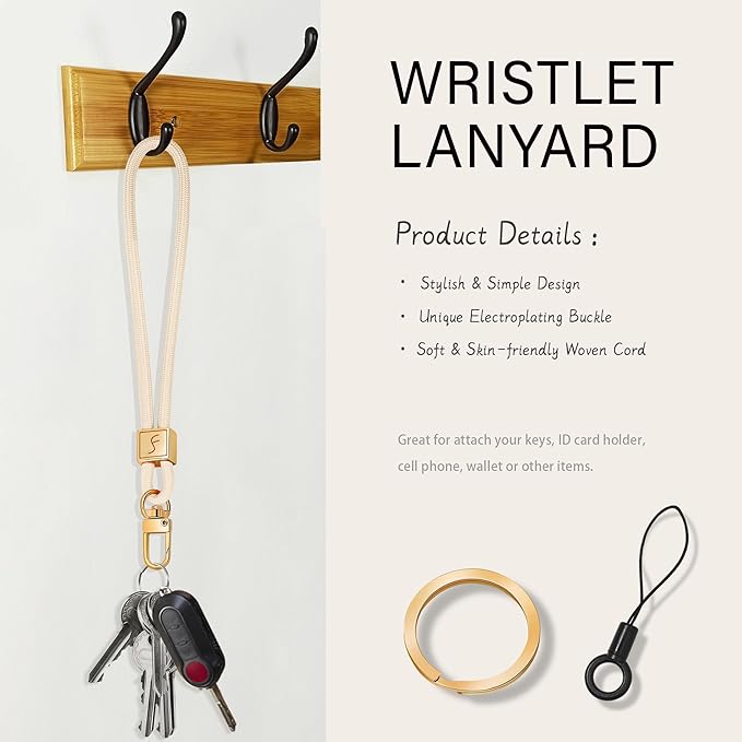Fishent Keychain Wristlet lanyard, Cute Key Chain Holder, Upgraded Woven Wrist Lanyard for Keys, Wristlet Strap Keychain for Women Men Car Keys ID Badges Card Wallet Phone (Starlight)
