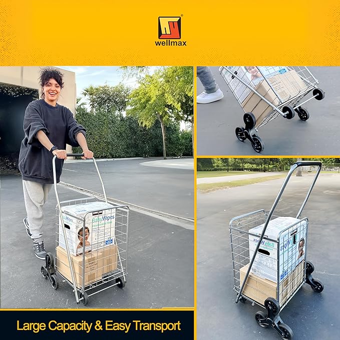 - Effortless Maneuverability: The oversized wheels and innovative stair climber design allow you to navigate curbs and stairs with ease. No more struggling to get your cart up or down steps.
