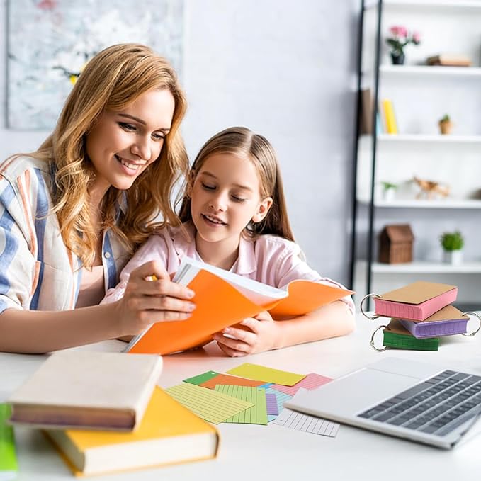 800 PCS Index Cards 3x5 Inches Colored Flash Cards with Ring, Punched Lined Flashcards Ruled Index Cards Notecards Study Cards Heavy Note Cards for Studying, Learning, School, College, Memory