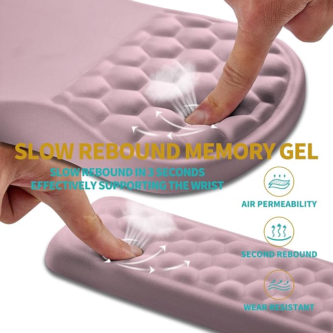 Hokafenle 2 in 1 Ergonomic Mouse Pad Wrist Support & Wrist Rest for Computer Keyboard Set, with Relieve Carpal Tunnel Pain Massage Bulge and Full Memory Gel Design (2In1 Set, Pink)