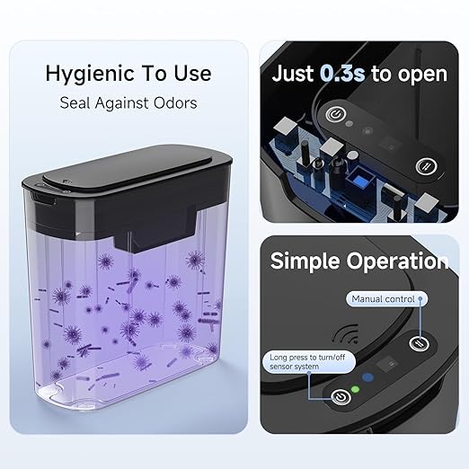 - 【Perfect for Narrow Spaces】The slim design of our smart trash can make it ideal for small spaces, fitting perfectly into corners and narrow areas in office, bedroom and bathroom, etc. Get it now to improve the space utilization!