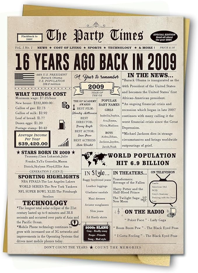 - 16th Birthday Gifts-- Find interesting 16th birthday cards for your children. The cards contain some specific events which can help you review interesting events with family and friends.