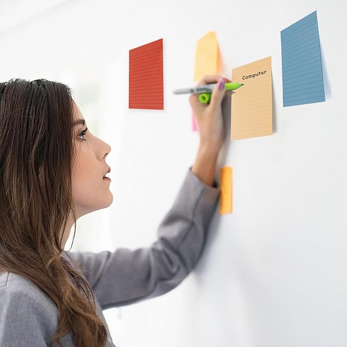 - Widely Uses: These lines sticky note pads are great for helping you stay organized and efficient, sticky notes lined are suitable for school, office, family. Adheres for jotting down to-do lists, writing notes or organize tasks on walls, doors, fridge, monitors, desktops, blackboards and almost all smooth surfaces