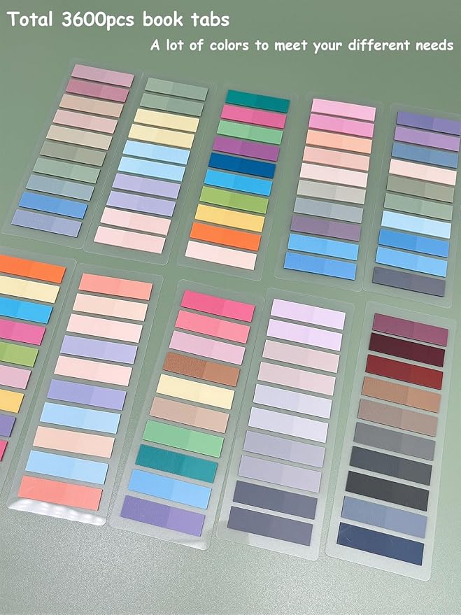 - Value Package -- You will get 18 sets of 3600 pieces annotation tabs for books, each sticky tab size is 1.73 x 0.43 inch. More colors and more quantity morandi sticky tabs can meet your more usage needs in terms of color and quantity, large quantity book annotation tabs are enough to be used for a long time.