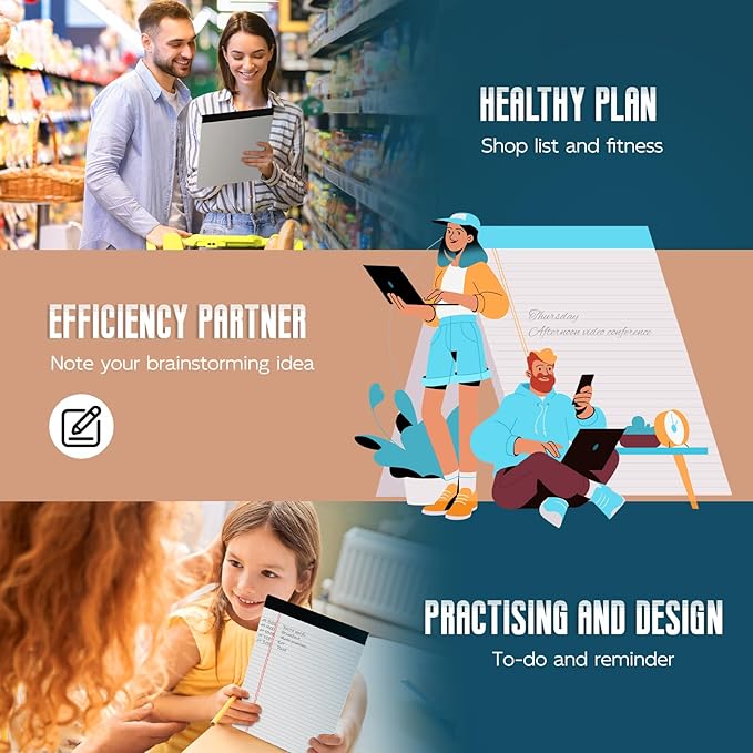 - 【Double-Sided Printing】:The 8.5" x 11" writing pad is designed with double-sided printing, providing you with twice the writing space without wasting any paper. Each pad contains 30 sheets with 60 pages, Valuable note pad paper gives you plenty of space to record your ideas/ to-do. Make the most of these legal pads to note brainstorming idea/ homework practicing/ shopping list, etc