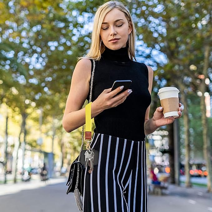 Fishent Stretchy Wristlet Keychain,Braided Cute Wrist Lanyards for Keys, Key Chain Holder for Women Men, Wrist Strap Keychain for Car Keys Phone Camera Wallet ID Badges Card (Yellow)