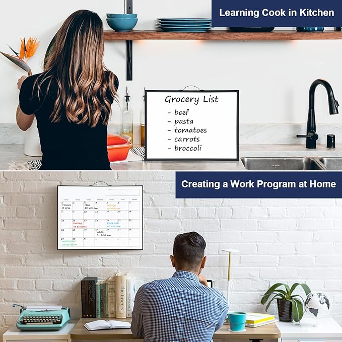 - DOUBLE SIDED DRY ERASE WHITEBOARD: Magnetic dry erase board is perfect to take notes, drawing, learning, teaching for home, office, school. Another side calendar whiteboard provides an extra writing space for daily schdule or checklist, recording important events, to do list for the tasks.
