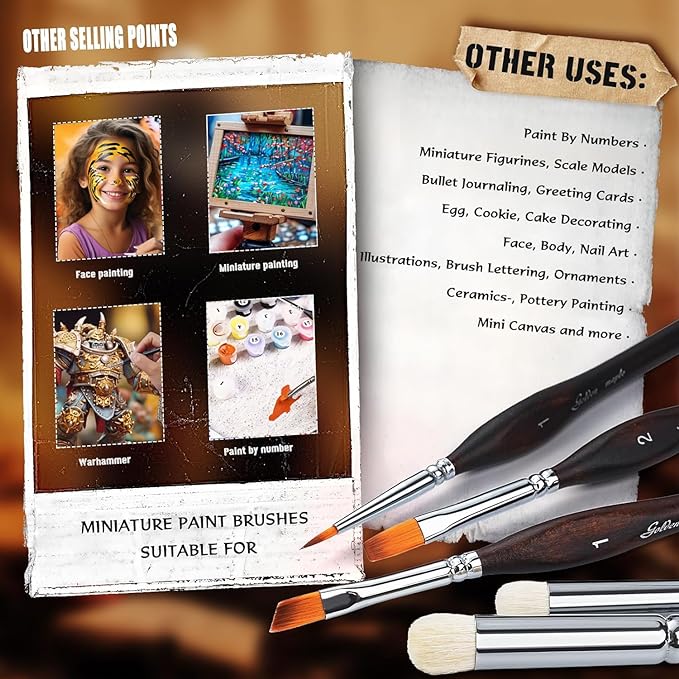 - 【IDEAL FOR PRECISION PAINTING: Miniature brushes are perfect for 40K, DnD miniatures D&D figurines, ultra fine detail painting, army figures. You can use detail brush set as paint by number brushes, hobby paint brushes, plastic model paint brushes,express yourself through any creation and craft! The mini paintbrushes are perfect present for your loved one or a treat to yourself !