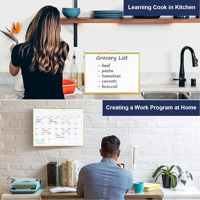 - DOUBLE SIDED DRY ERASE WHITEBOARD: Magnetic dry erase board is perfect to take notes, drawing, learning, teaching for home, office, school. Another side calendar whiteboard provides an extra writing space for daily schdule or checklist, recording important events, to do list for the tasks.