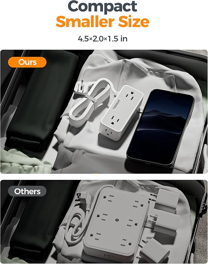 - 900J Surge Protector Outlet: Power strips with surge protection are equipped with short-circuit protection and over-current protection. This flat outlet extension cord can protect your electrical appliances from lighting, surges and spikes